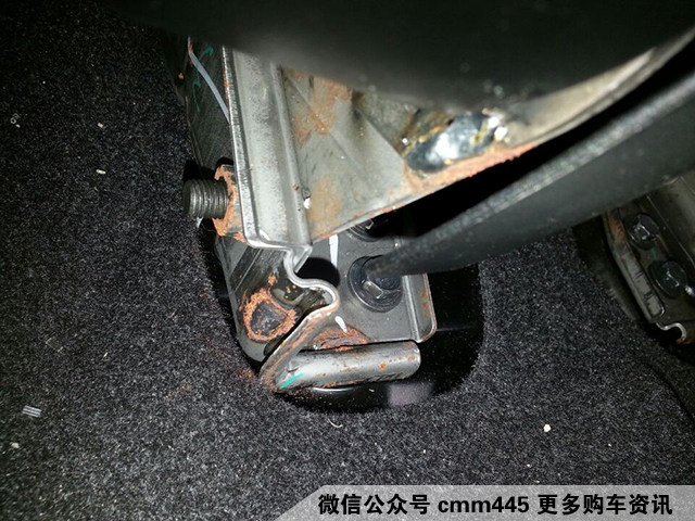汽车的座椅金属支架平常是没什么机会接触到水的。如果除了使用的正常磨损痕迹之外还有锈斑的话,那就需要注意了。当然,如果作为一台二手车,座椅底部支架是崭新的,告诉你这里面没鬼,估计鬼都不会相信。