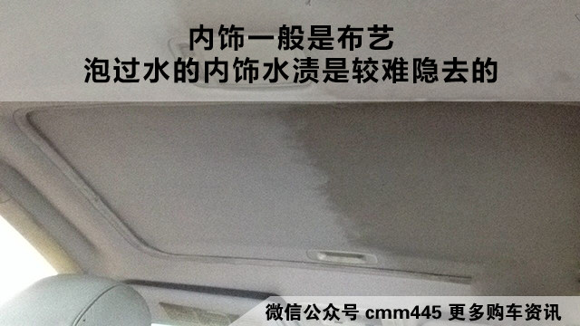 PS:不排除一些二手车并没有泡水,而是由于年限的原因,贴合的胶质有老化导致内饰松脱和不平整现象,但是这类情况不会有水渍。并且内饰的整洁程度会比较好。