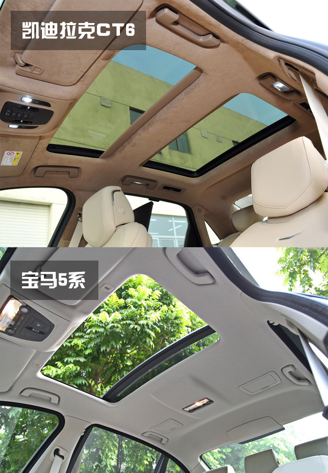 此外,如果选择更高配的车型,还可以体验业内首创高清流媒体后视镜、智能夜视系统和360度全方位行车安保系统等,让整车科技含量再上一个台阶。而当你坐在CT6的内部仰头瞻望的时候,还能收获到前所未有的开阔景致。是的,全系的CT6都配备了一块拥有出色采光能力的全景天窗。在这点上,宝马可是鞭长莫及的。