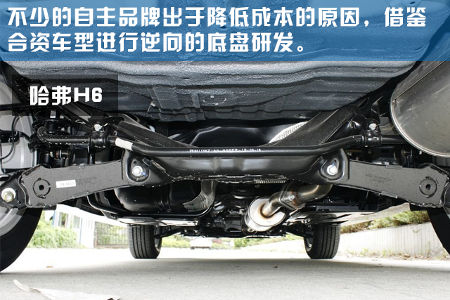 至于底盘,在先期的汽车制造当中,不少的自主品牌出于降低成本的原因,借鉴合资车型进行逆向的底盘研发。譬如哈弗H6的底盘借鉴了老款本田CRV的设计,吉利博越的底盘借鉴老款丰田RAV4的设计,不一而足。受前期的借鉴因素限制,自主品牌后期能够改进的空间是很小的,对于整车造型的设计,悬挂的搭配都有直观的影响。