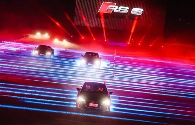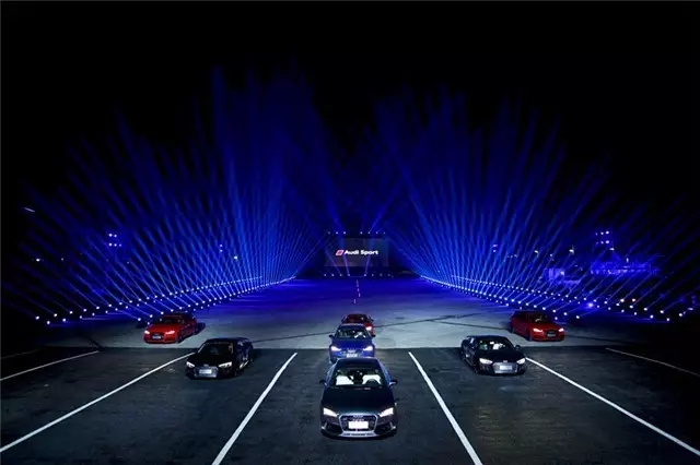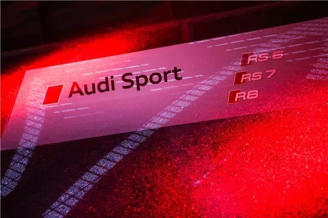 在备受瞩目的Audi Sport新车发布会当晚,主场馆被设计成奥迪V8发动机引擎的造型,伴随着有律动的激光秀和让人亢奋的引擎声从远处传来,三款新车从场馆下面的跑道飞驰而过,整个场馆都为之一震。仿佛身处引擎当中,耳边留下的只有引擎和疾风呼啸的余音,即便结束两天后,如此视听盛宴至今还历历在目。