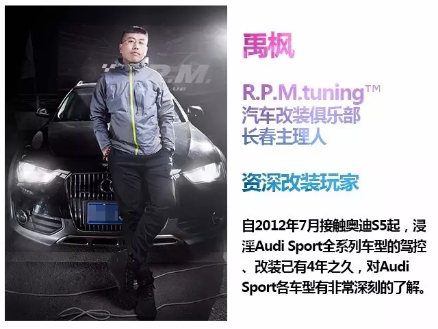 我本身就是一位奥迪车主,平时改装工作中积累了非常丰富的玩车经验。一般而言,Audi Sport本身的性能已经非常高了,像RS7、RS6到我们俱乐部普遍是简单的程序的调教升级,制动升级,进排气升级等等,还有就是外观上做一些个性的套件改装,内饰的定制等这些偏向舒适性的改装。在整个改装的文化渲染下,我们希望改装是一件对自己个性追求的一件事,而不是飙车的代名词。而平时飙车的话,我们品牌的理念就是“拒绝公路飙车”,会提倡车友、俱乐部成员包括我自己,都会到正规的赛车场地去玩,这样才能尽情的、安全的体验和释放车的极限。