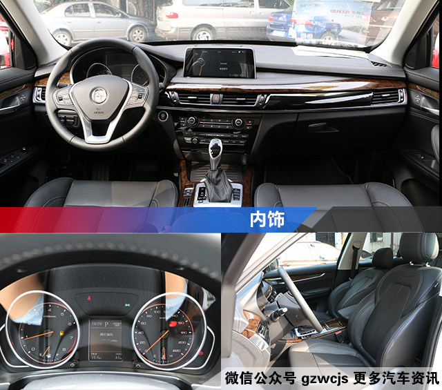 汉腾X7的内饰可以看出还是用了不少心思的,中控大量的软质材料,配合上木纹的装饰面板,显得豪华大气并不会让人觉得反感。各个按键之间的接缝也较平整。中控台上的9寸屏幕尤为很抢眼,并且触控的反应很快,并没有卡顿的现象。
