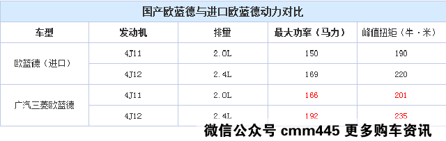 9月24日,广汽三菱欧蓝德宣布正式上市,售价15.98万元-22.38万元,新车将会有2.0L和2.4L两种动力共计4款车型可选,具体售价见下表。