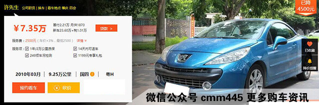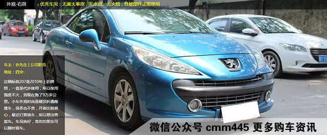 这是一辆2008款的进口标致207 CC 1.6T MT车型,上牌时间为2010年3月,已经有着6年多的车龄,里程仅仅是9.25万公里,已经经历了一次过户,非4S店保养,但给人感觉是非常的划算,毕竟当时这是一辆售价接近30万的进口敞篷车。而对于为什么是粤H牌照,原因是因为笔者是肇庆人,而且肇庆国5的迁入标准限制了不少二手车的迁入,而买二手车前记得先考虑当地的迁入标准。