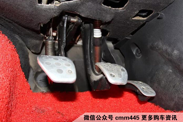 这张踏板特写再次向我们说明这很大可能是辆“调表”的二手车,踏板磨损程度绝非是9万多公里的车。在此没有发现有生锈以及泥沙的痕迹,所以可以基本排除泡水车的迹象。