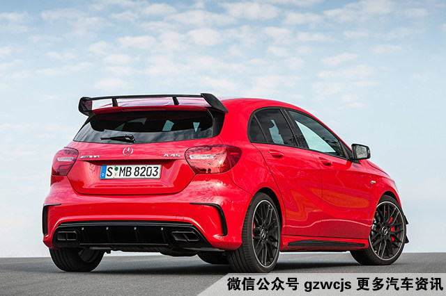 这台AMG A 45除了拥有恐怖的动力输出,外观同样是也是非常张扬,黑色轮毂、红色刹车卡钳,再加上车尾那非常夸张的扰流板(尾翼),就算是停在路边,相信回头率也非常高,开在路上必定能吸引到交警的注意。