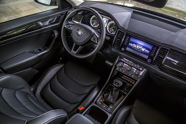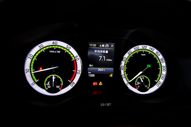 柯迪亚克的内饰设计同样胜过途观L,大众那一套内饰真的是看腻了,柯迪亚克整个内饰最出彩的地方就是它的仪表盘,简直就是泥石流中的一股清流,两个圆形表盘的边框带有一整圈的镀铬装饰,数字显示区域使用了白色作为底色,就像和田玉一般,内圈则是斯柯达标志性的绿色,清新脱俗,心旷神怡(稍微带有一些夸张写作手法,敬请原谅)。