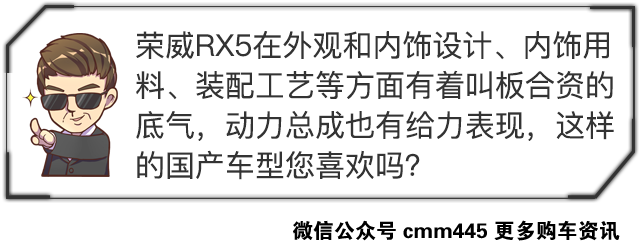 荣威RX5属于一辆富有看点的车型,它那颇具档次感的外观内饰设计、10.4英寸的中控大屏、智能互联系统等方面让它在上市初期成为了“网红”!而且1.5T、2.0T两款发动机也带来高功率、强动力的表现。而变速箱低速时带有一点顿挫、急加速时发动机的静音控制方面还有在提升的空间。