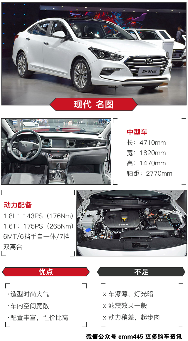 有点悲催(名图 2017款 1.8L 自动智能型GLS):1,合资车中同级别相对便宜,没有明显缺点。2,空间大。17款颜值比16款年轻许多,比较年轻符合白领身份。动力对买第一辆车的人绝对够用,毕竟不飙车。全景天窗,虽然驾驶的时候用不到但是偶尔带个人会很有自信。
