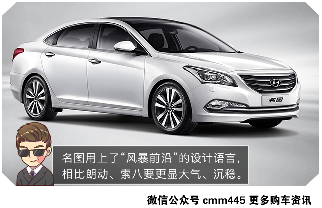 韩系车大致上可分成两个派系,一是实力派,二是偶像派。而名图自然便是偶像派的成员,它的造型设计运用了更多硬朗的线条,相对于朗动、索八的“流体雕塑”来说要沉稳大气得多,看上去很舒服顺眼,男女老少通吃。