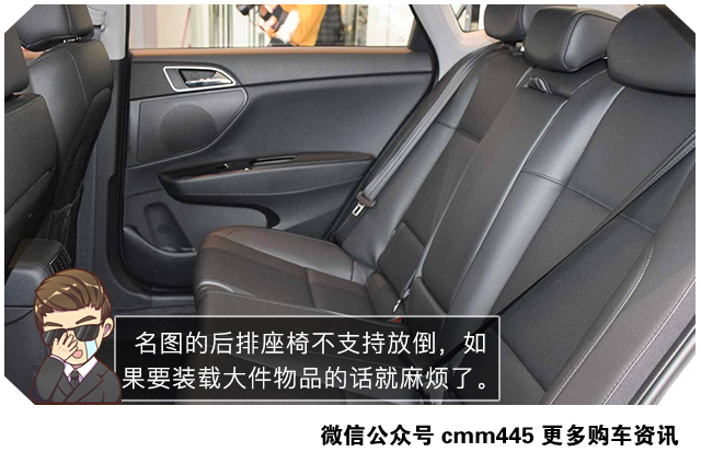 车主们在使用过程中还发现,名图的后排座椅不能放倒,这在一样程度上制约了车辆的拓展性能。改进得方法其实也不难,重新设计一个4/6比例放倒的座椅模板便可以了,关键还得看厂家造车的时候够不够用心。