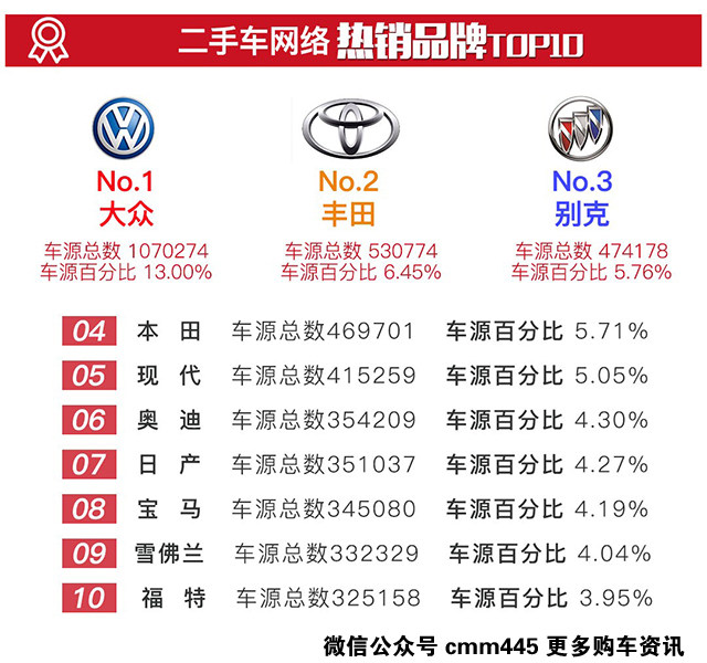 在上半年的二手车销售中,最热销的三个品牌分别为大众、丰田以及别克,它们三者分别为德系、日系以及美系的代表,它们较早地进入国内拥有扎实的群众基础。以及品牌旗下车型新车销量并不差,其中就有大众的朗逸、丰田的卡罗拉、别克的英朗,它们都是新车销售细分市场的佼佼者,新车受欢迎,也就意味价格更低的二手车也能有不错的吸引力。