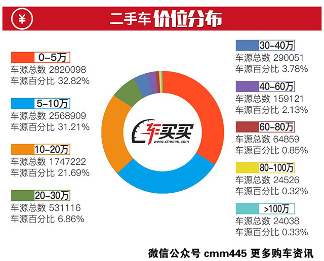 从数据分析,二手车销量最佳的价位为5万以下,其次是5-10万区间,这两者相加已经达到64.03%,原因嘛,就是降低预算的同时获得相似的用车体验,购买力也是集中在这区间。而10万以下区间如此高的销售比例和新车销售比例相似,所以二手车对新车而言更像是一个互补品,当预算不足的时候不少消费者会选择价格更低的同款二手车。