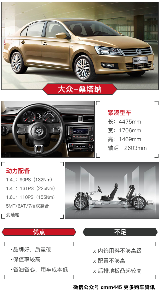 此外,大众还特别不舍得在10万以下车型的用料上花心思,看看捷达桑塔纳便知,全车内饰都赤裸裸地使用硬塑料,完全找不到有皮质的地方,看上去非常廉价。