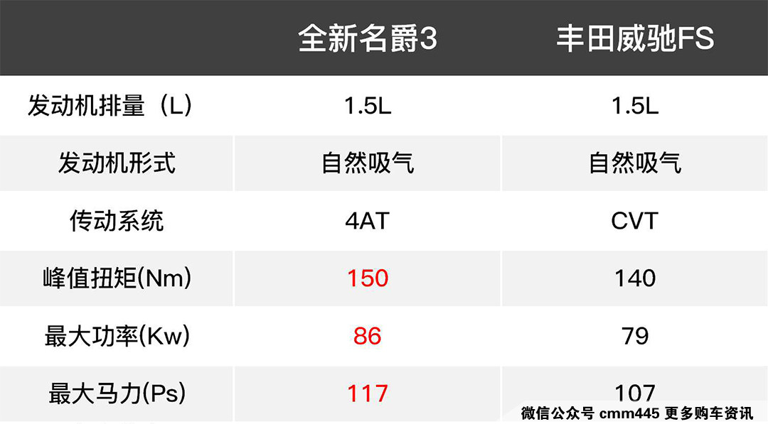 尽管差距不大,但数值更大也代表它“更能跑”,丰田的小排量发动机向来是合资车企中的省油大户,威驰FS更搭载了一台无级变速箱,更是将燃油经济性降到了更低的水平。