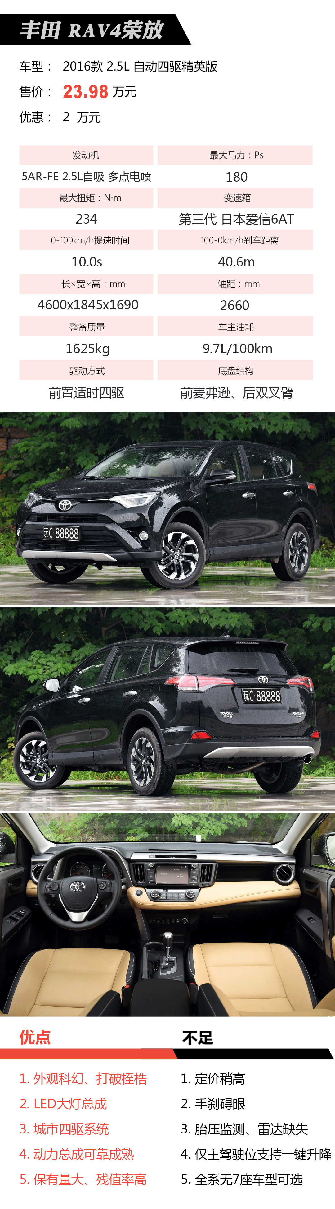 相比旧款,荣放RAV4激进的设计语言俨然一“C-HR MAX”,换汤不换药的改款背后依旧是熟悉的2.0L+CVT、2.5L+6AT动力组合,无7座布局可选在奇骏、欧蓝德面前相形见绌,幸好出众的空间表现、低油耗以及良好的客户口碑为其加分不少。