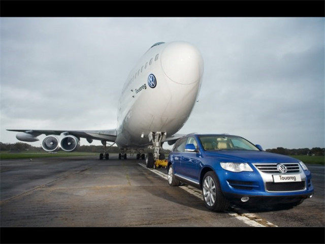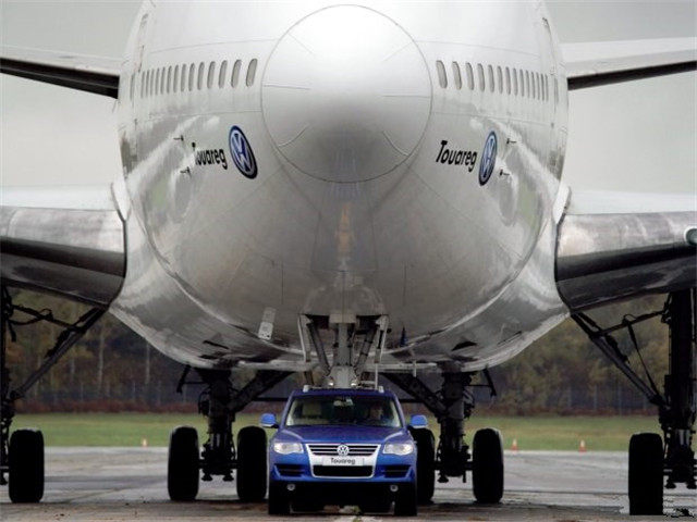 2006年,在英国的一档汽车节目上,一台大众途锐R50 V10就拖动过一台波音747。这台波音747重达150吨,为了不让途锐打滑,主持人还特意往车上放了四吨多的重物。除此以外,这台750牛米扭矩的途锐没有经过一丁点的动力改装。