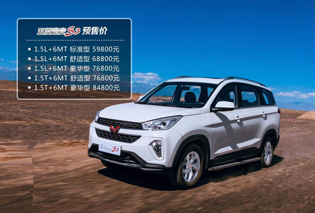 根据提前曝光的消息,五菱宏光S3的预售价区间为5.98-8.48万元,将提供1.5T和1.5L两种动力系统共计5款车型,并匹配6速手动变速箱,具体如下图所示: