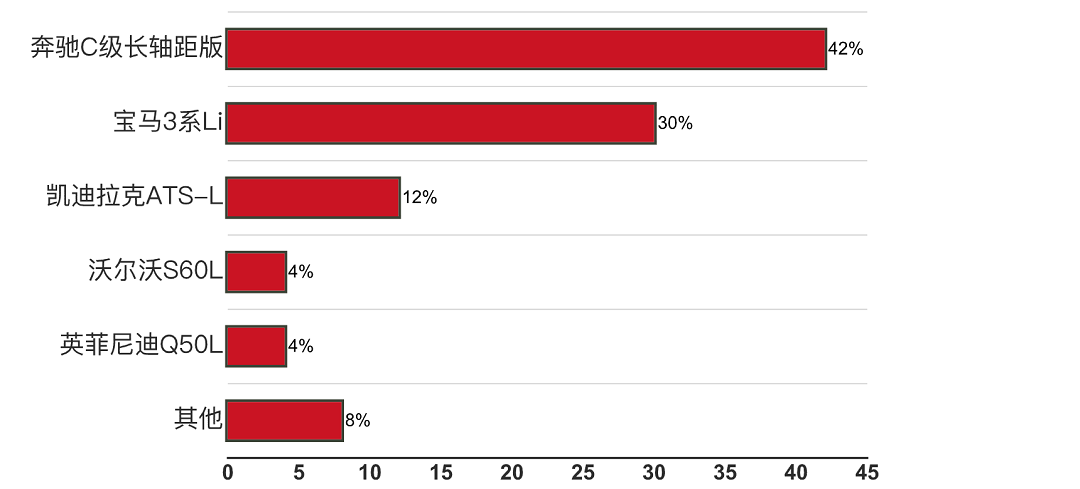自不待言,“三架马车”中同级别的奔驰C级和宝马3系必定是头号的竞争对手,值得注意的是,调查的A4L车主当中,有超过4成的车主考虑奔驰C级,其次才是宝马3系,C级的指导价为31.28—48.90万元,起步价就已经高出不少,即使算上平时的现金优惠两者仍有不少差距。