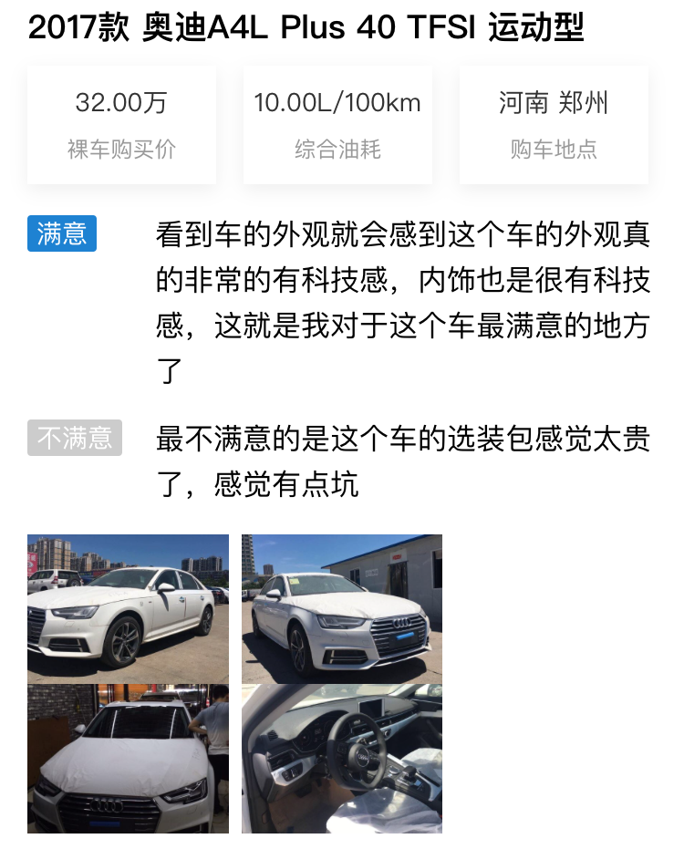 总的来说,除了价格需要一点时间去接受之外,奥迪A4L就没其他问题了,主要是消费者习惯了这种现象,但是反过来看,增加了液晶仪表盘、矩阵大灯等科技配置,全新的平台、动力,价格提高一点点也的确无可厚非。