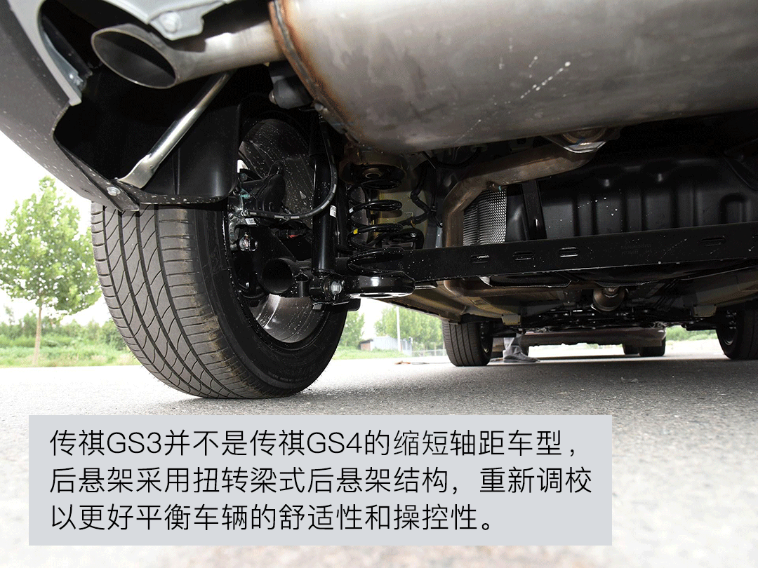 从外观上看,传祺GS3并不全是传祺GS4底盘缩短轴距后的产物,尽管设计风格毅然非常相似,不过尺寸小一号,同时机械方面也有所不同,定位为小型SUV。两款车型的起售价相差两万多,当中价格自然有重叠,传祺GS3的顶配车型相当于传祺GS4 1.3T自动挡最低配车型,定价还是比较合理。传祺GS3和GS4两款车型最大的区别就在于底盘和动力方面,更小号的GS3采用了扭转梁式后悬架结构,与GS4采用的多连杆后悬架完全不同,造成这样的差异当然就是两款车的定位以及造车成本有关,亮点在于GS3采用更多的轻量化设计,调校都比较均衡,更顾忌到了舒适性。动力方面,传祺GS3则多了1.5L自然吸气发动机的选择,不过相信消费者更倾向于1.3T的发动机版本,能提供更充沛的动力。