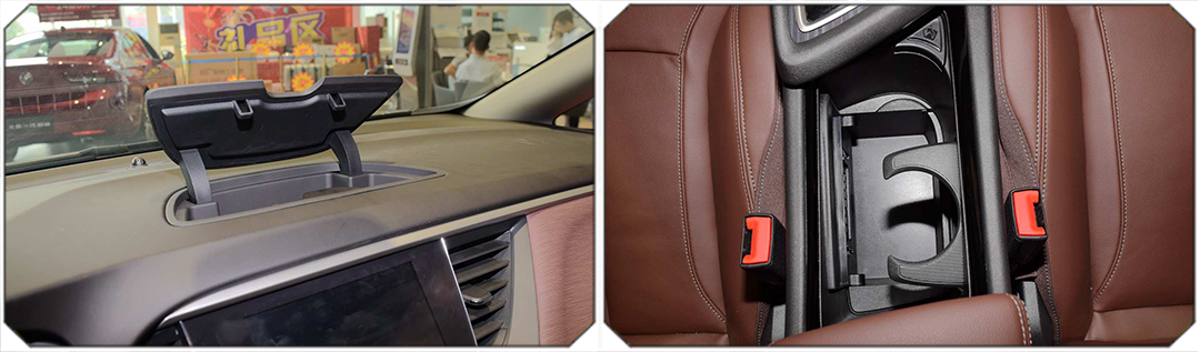 如果你还以为只有日系车会合理利用空间,那你的观念就已经OUT了。比如说GL6的中控台顶部与左侧都有票据盒,扶手箱的容积较大,这个上层放水杯、下层放纸巾的设计就很讨喜。