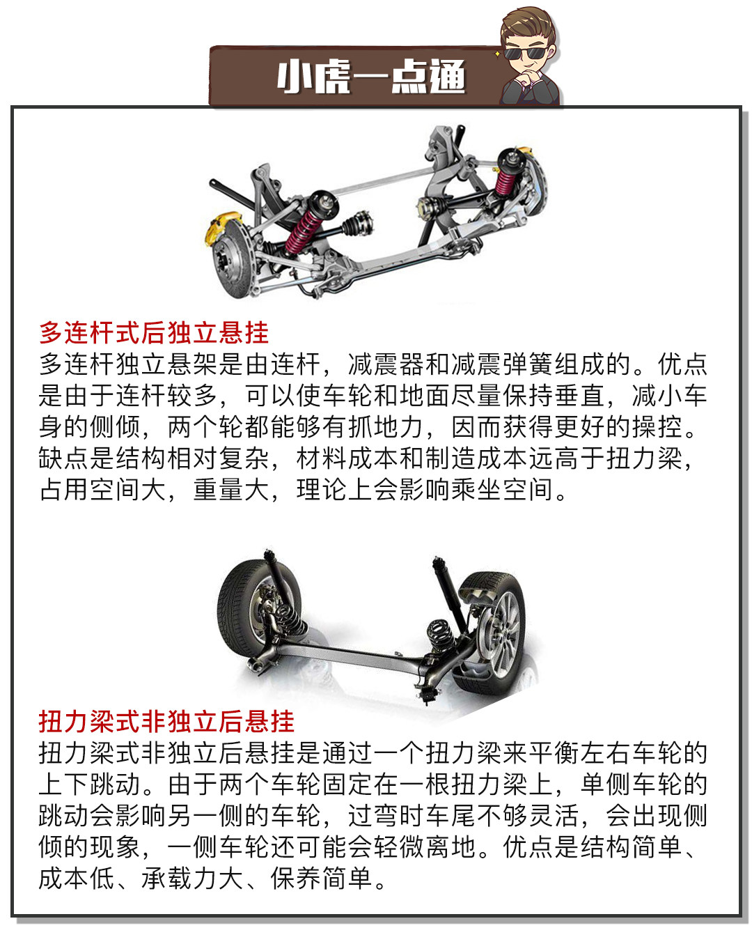 所以,这个级别的紧凑型轿车是否真的有必要采用多连杆独立后悬呢?毕竟紧凑型车的空间有限,更多消费者注重的还是性价比和空间。马自达一向不走寻常路,追求人马合一的驾驶感受,用扭力梁理论上不适合,但扭力梁简洁的结构相比多连杆在改善NVH表现方面的确更有优势,多连杆后悬的结构比较复杂,部件和转轴点数量比扭力梁后悬多,所以会产生更多的震动和噪音,影响舒适性。此外,使用扭力梁后悬理论上对于改善车内空间也有一定的帮助。