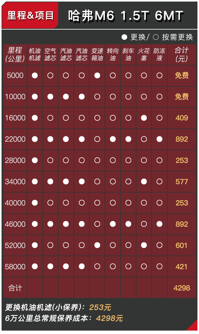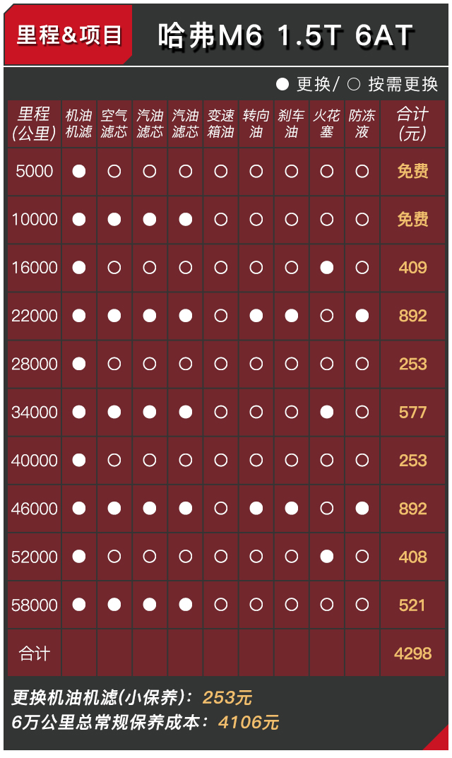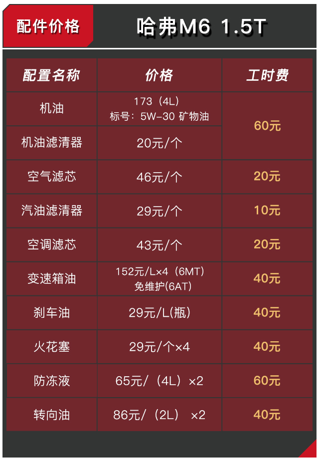 你会发现,其实哈弗M6在售后保养方面还是做得相当实惠,即便是到4S店保养也同样实惠,但在机油方面M6原厂标定了使用矿物机油,虽然在价格方面很便宜,但教授还是相信后期会有不少车主会改用品质更好的合成机油,这样的做法无疑也会加大了后续车型保养的费用。