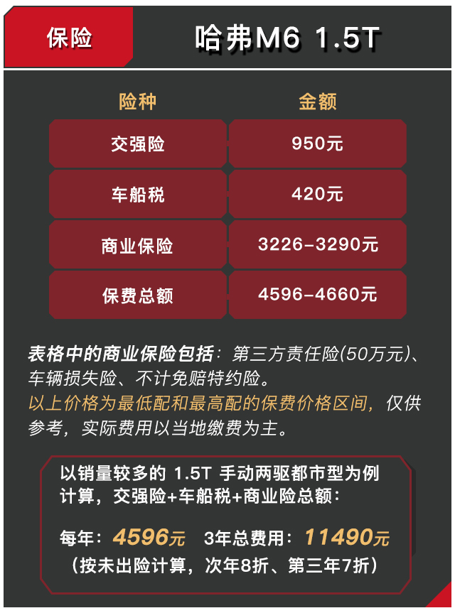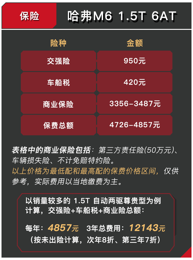 哈弗M6的三包有效期为2年5万公里、保修期为6000km/次,而且厂家赠送了首保以及第二次保养的配件与工时费,也能省下不少费用。