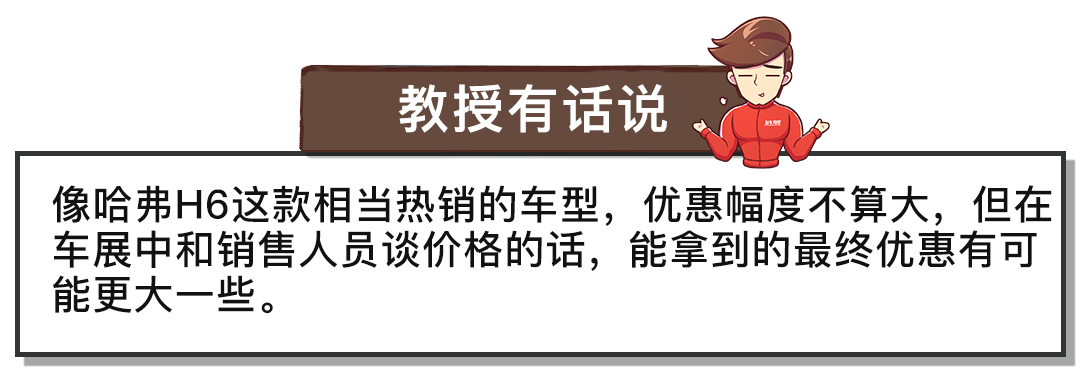 而教授去到广州某哈弗4S店,向销售了解到目前哈弗H6 2017款 换代2.0T车型的优惠幅度也为3000元,确定要买的话也是可以再谈一谈价格,但一般优惠幅度不太大。