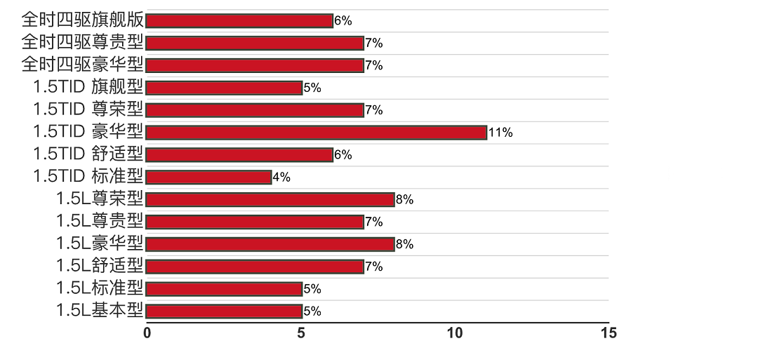 以上所指车型为2016款车型,可以看出较多人选择的是1.5TID豪华版,搭载1.5T发动机最大马力154Ps,匹配6挡双离合变速箱,倒车影像、定速巡航、胎压监测等舒适配置都比较齐全。