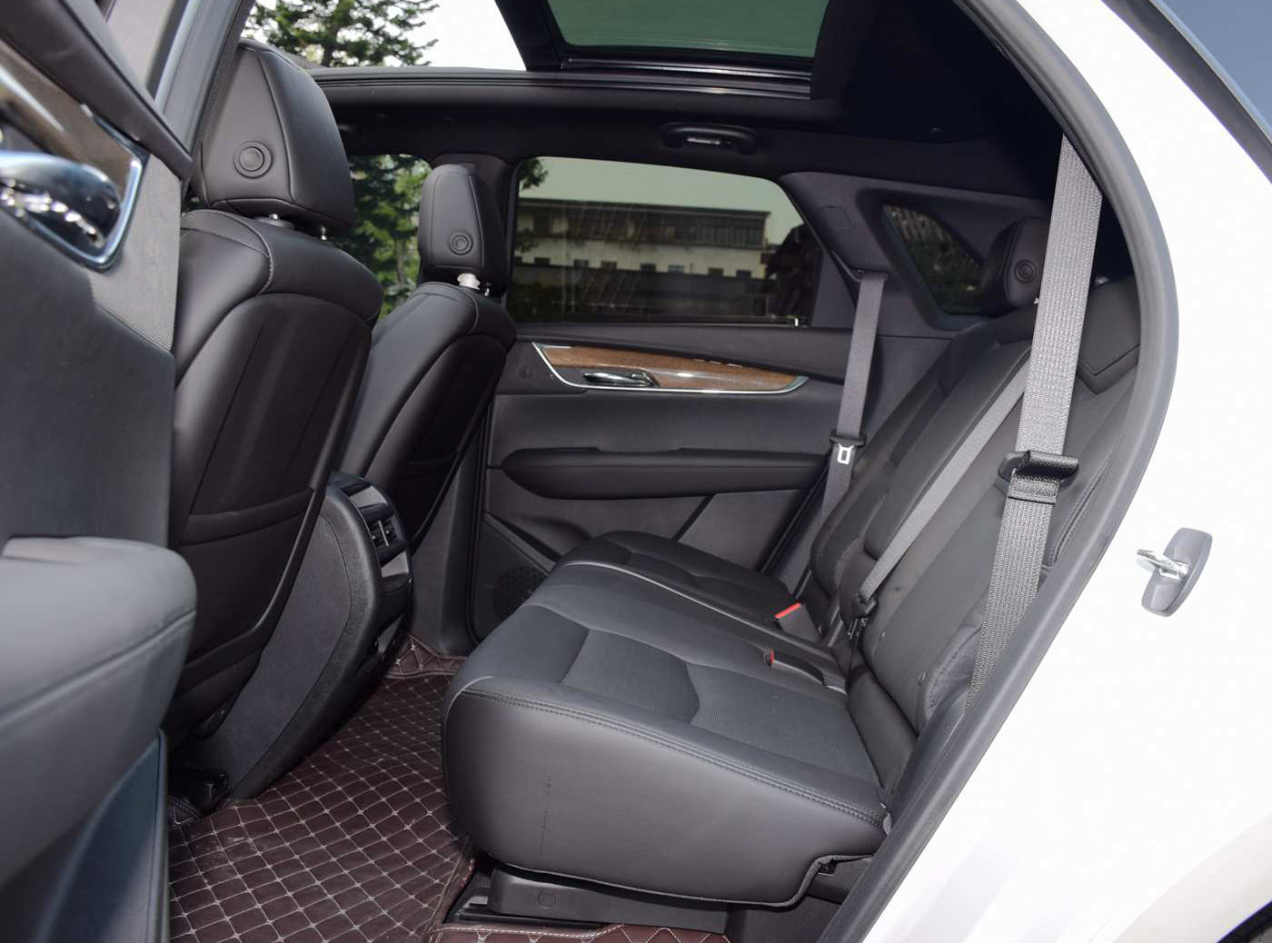 在乘坐空间方面,我们以身高180cm体验者作为参考,将座椅的高度调节到最低,前排的头部空间有一拳的空间;后排的腿部空间为一拳三指,头部空间则剩一指的空间。不过凯迪拉克XT5后排的横向空间表现得更为出色,三人乘坐的时候并不会觉得过于挤。