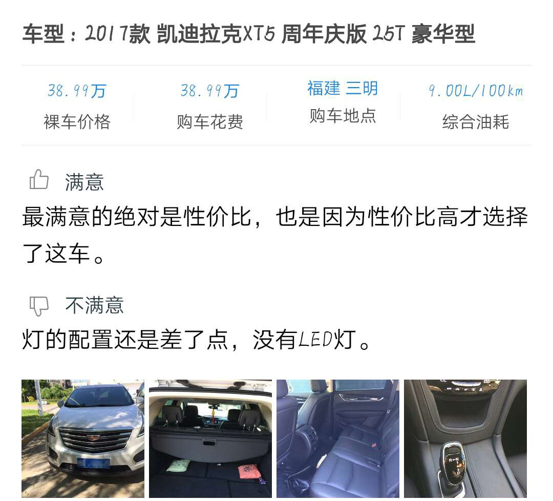 在一个奔驰宝马奥迪车型烂大街的时代,强调个性、追求低调逐渐成为很多消费者买车的主要方向。凯迪拉克XT5恰好符合消费者的需求,稳重霸气的外观造型、充满科技感的车内氛围、良好的乘坐舒适性以及高达6万的购车优惠,与同级别车型比较时,性价比瞬间得以凸显,所以预算充足的消费者不妨考虑一下这款车。