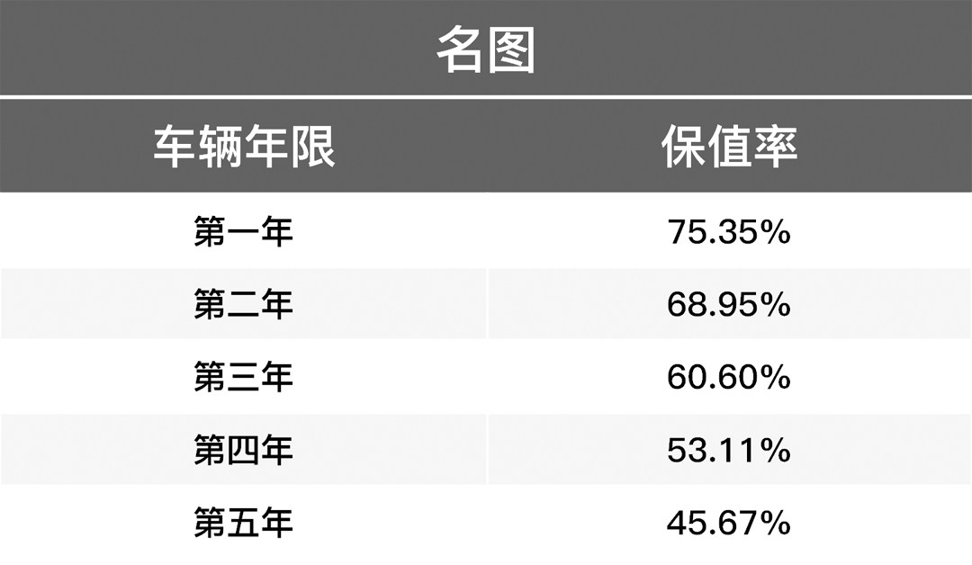 在保值率方面一直是韩系车的“硬伤”,名图第一年保值率还有75.35%,表现还行,但是每年降幅较大,到了第五年仅剩45.67%,如果想换新车的话还是在第四年之前卖掉比较好~