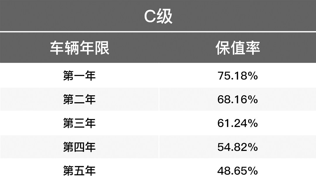 从数据上看,C级的保值率在前两年都是高于A4L的,但是每年降幅相比较A4L来说较大,所以越到后期保值率越低。
