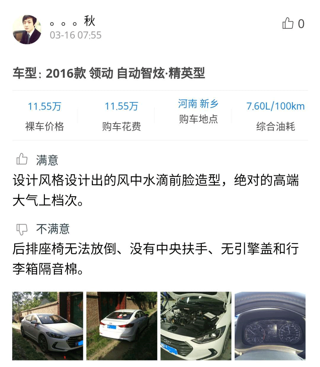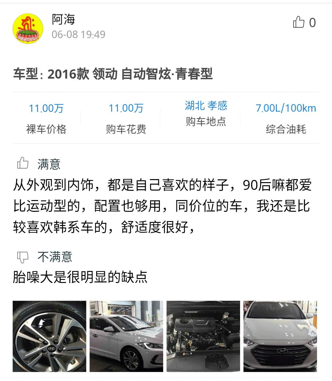 感兴趣的朋友可以点击小程序查看详细口碑,从口碑中可以看到,车主们对领动的颜值、配置和养护成本都比较满意。但有车主说出现一些刹车异响、胎噪略大的问题。