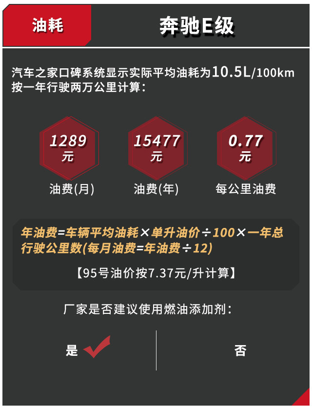 统计的平均油耗为2.0T车型,厂家建议使用燃油添加剂,而且是每箱油添加一瓶每瓶80元,如果算上这笔费用的话花费就高出很多了,并且4S店也会建议使用燃油添加剂,各地各店的意见不一,燃油添加剂的主要作用是减少积碳,每箱油添加一瓶感觉有点太频了,教授建议的是根据钱包厚度或者积碳情况添加。