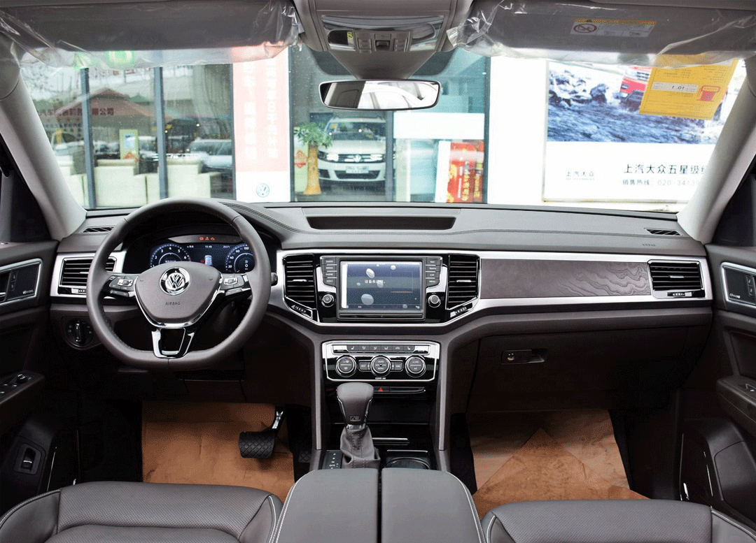 它的内饰设计为典型的大众风格,其轮廓造型四平八稳,中控台上的木纹饰板带有一些典雅气息。在车内的中控、门板、天窗等地方带有氛围灯。部分车型提供了全液晶仪表盘,显示效果细腻,整个内饰的质感颇为精细。