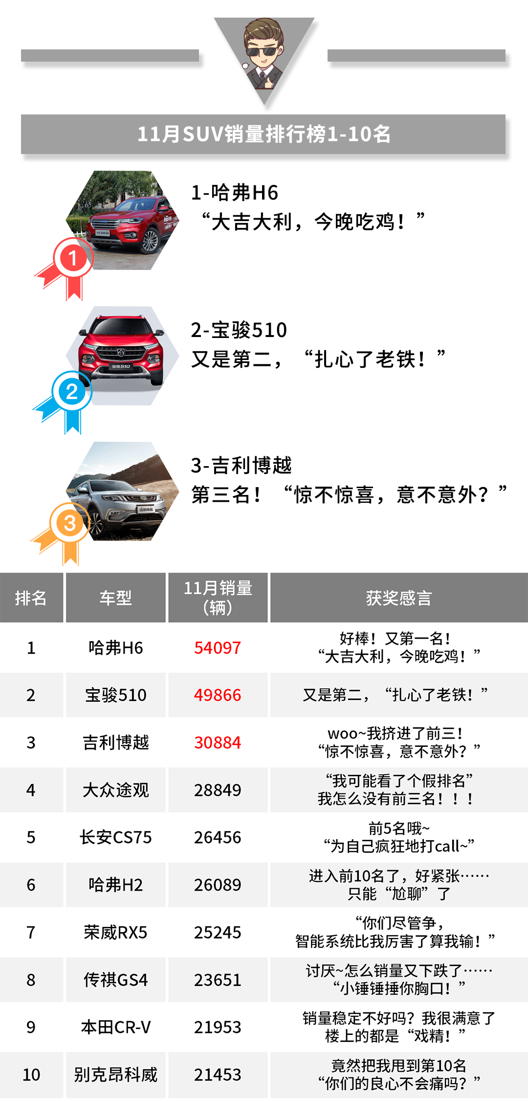 看完上个月SUV销量前10名,是不是想感叹一句“还有这种操作?”是的,当流行语与车型相碰撞,就会发现SUV市场竞争就像一出戏,而每一款车型都是“戏精”。