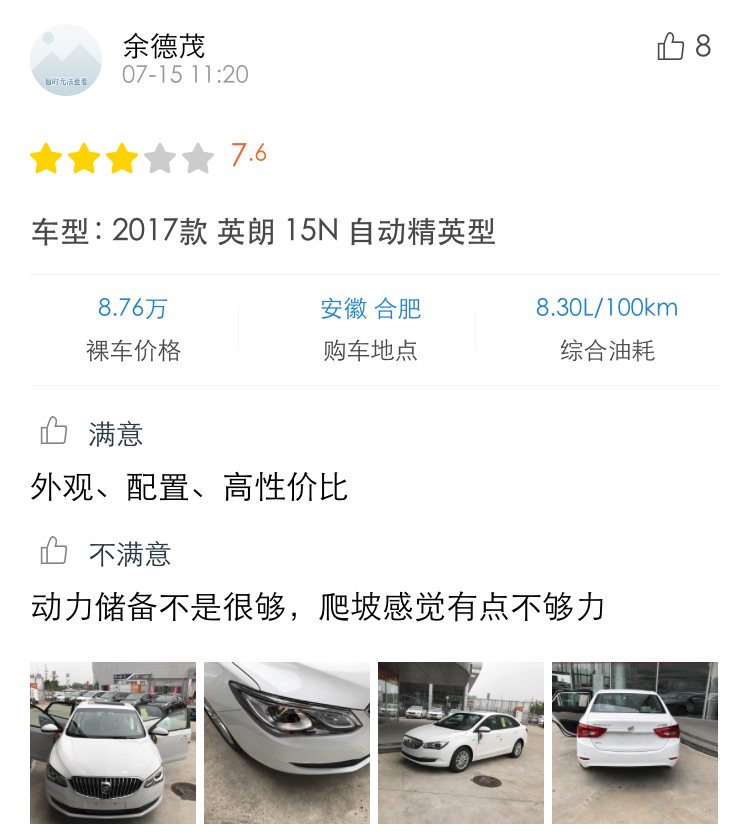 从口碑中可以看到,买了英朗的车主们对外观、内饰设计、配置丰富度等方面都表示满意。而不满意的地方主要是动力表现。感兴趣的朋友还可以点击小程序查看详细口碑噢。