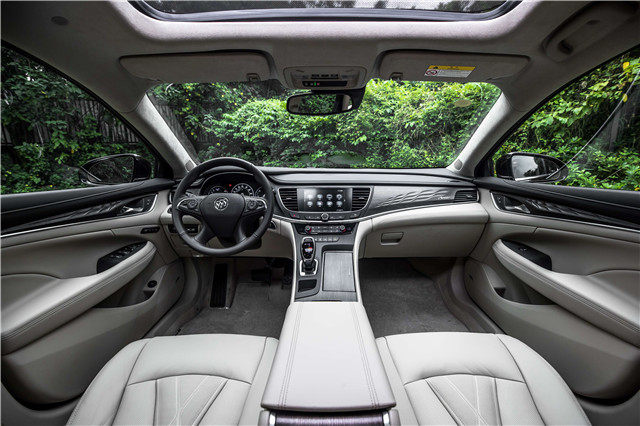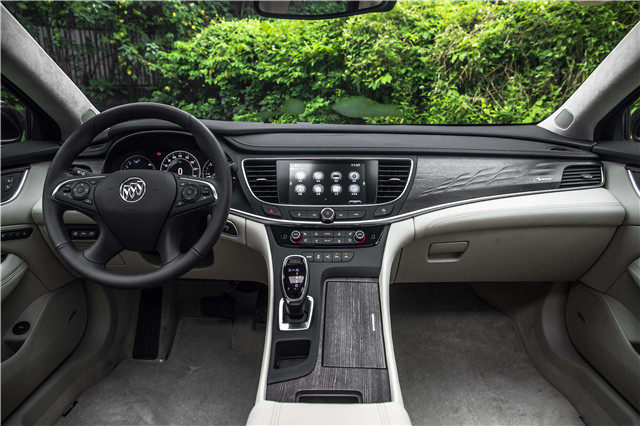 比如在内饰面板全都换成了木质纹理饰板,虽然颜色相比普通版君越的内饰变浅了,但是凸显出了简洁大方的设计理念。
