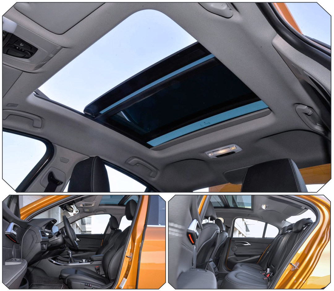 身高为1米84的试乘员坐在前排并调整好座位,头部空间为3指,坐到后排,头部空间为1指左右,腿部的空间则是1拳3指。比竞争对手奥迪A3和奔驰CLA有一定的优势。加上除最低配需选装,其他车型标配的全景天窗,在车内的空间感还是非常开阳的。