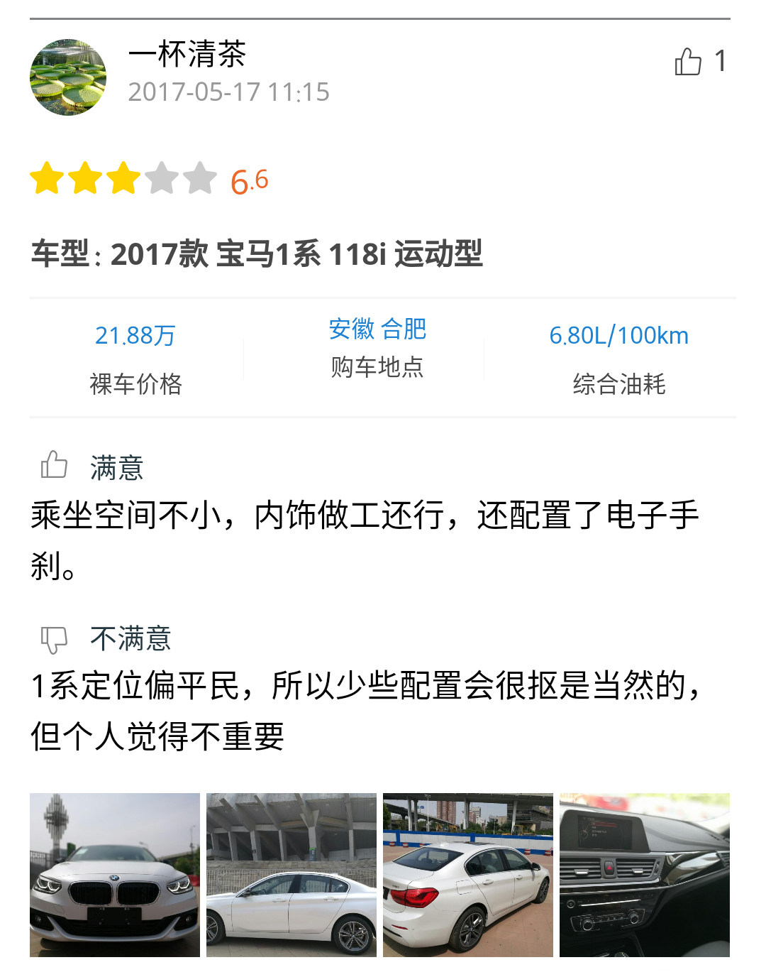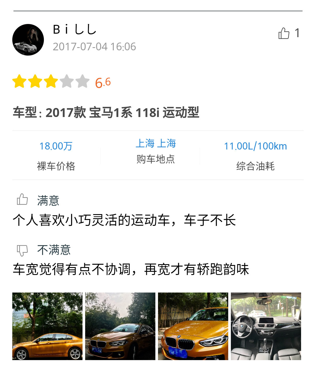 回顾2017年上市的重磅车型中,肯定不能忽略国产后的华晨宝马1系,虽然价格很有吸引力,可是入门车型的三缸发动机和前置前驱的布局,引起了不少争议。至今上市也快一年了,销量一般般,平均每月4000辆左右。既然争议这么大,让我们来看看车主们都怎么说吧。