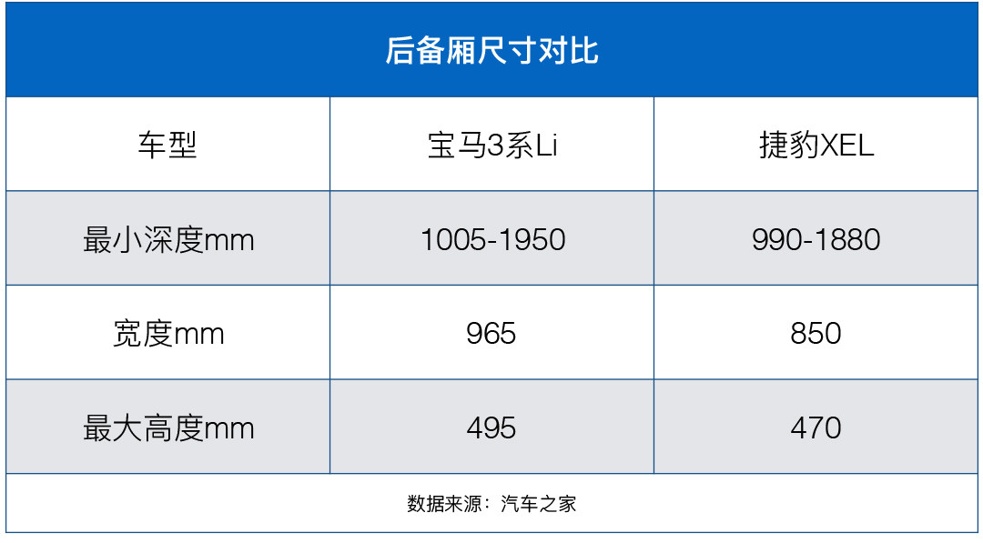 无论是后排腿部空间还是后备箱空间,宝马3系略胜捷豹XEL一筹。