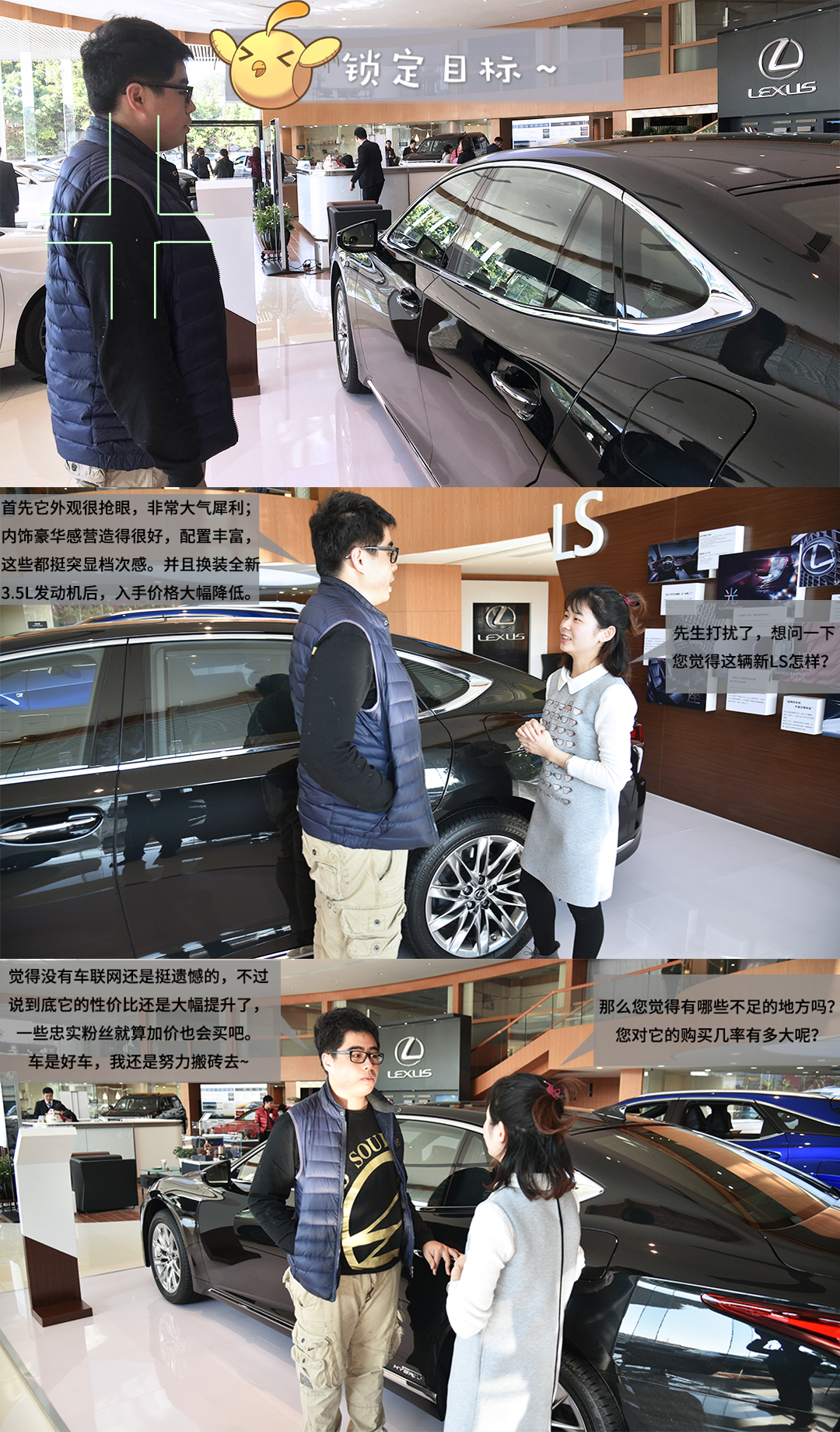 虽然是工作日,但是这家雷克萨斯经销商却很热闹,在这台雷克萨斯LS 500h 豪华版周围聚集了不少人,先采访一下大家的看法吧: