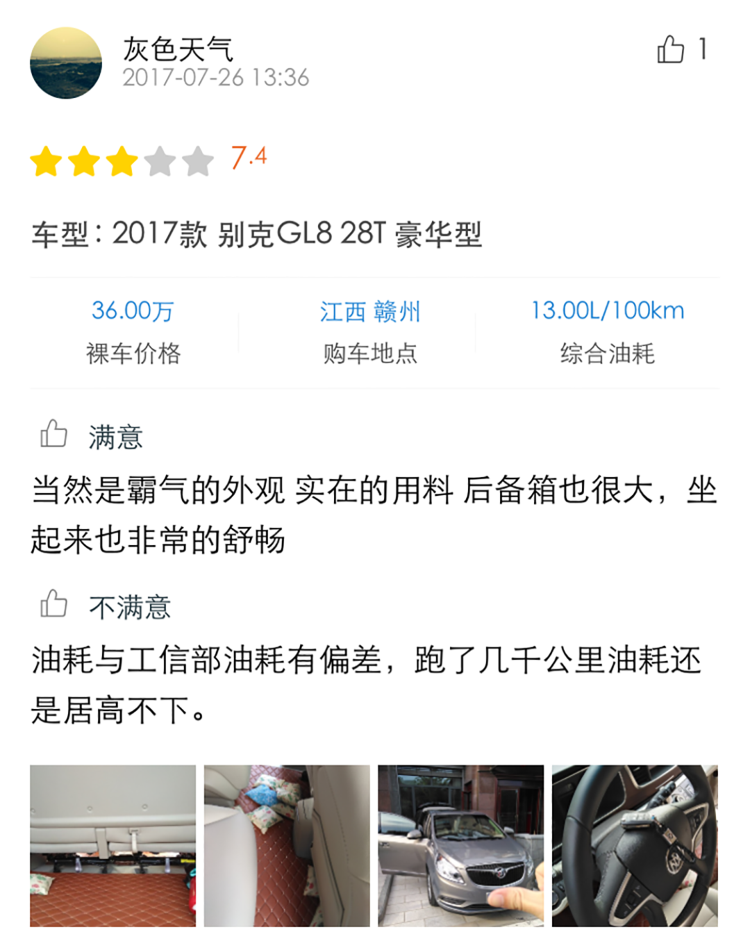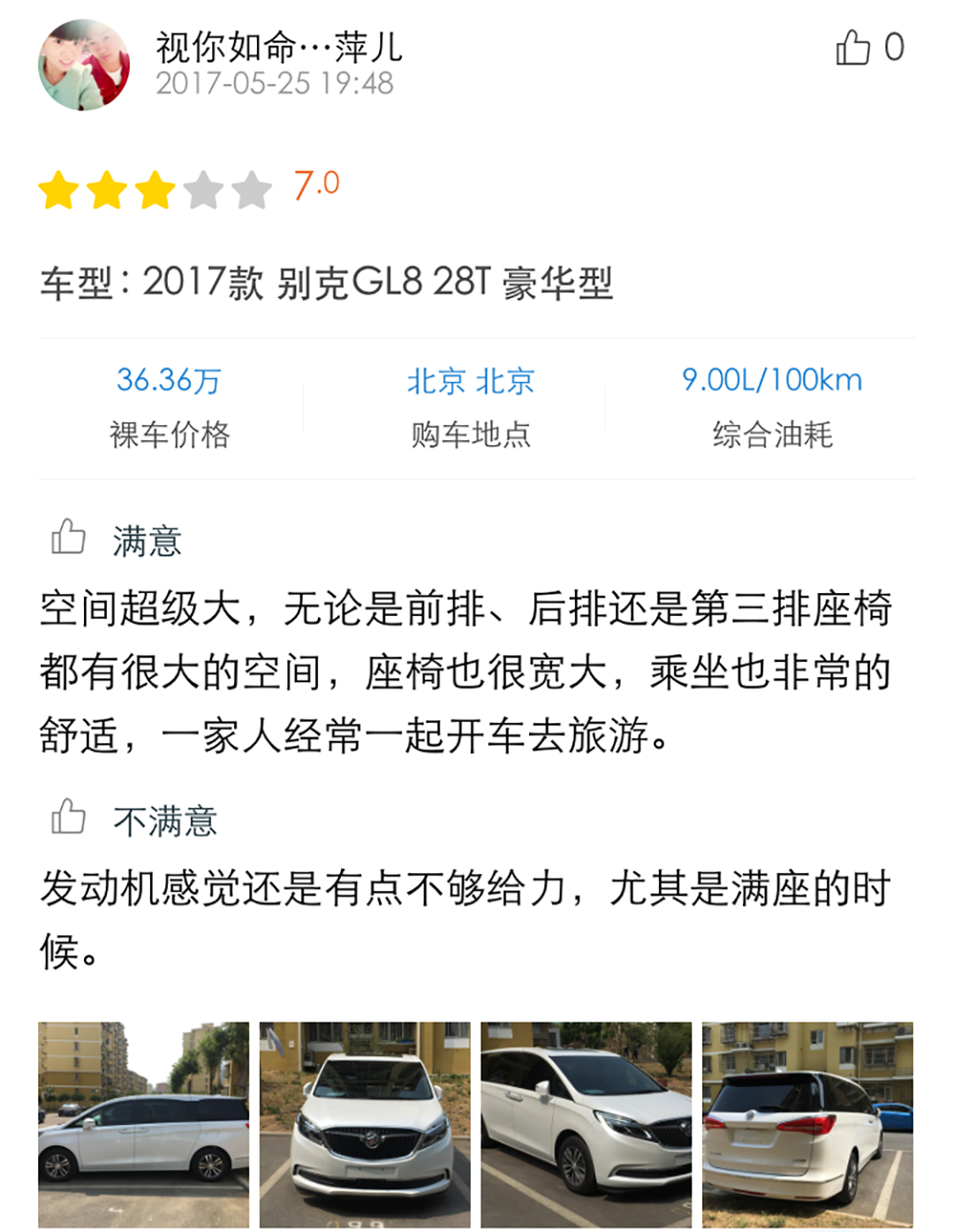 从口碑中可以看到,买了别克GL8的车主们对空间表现、内饰做工用料、舒适性等方面都表示满意。而不满意的地方主要是油耗表现等。感兴趣的朋友还可以点击小程序查看详细口碑噢。