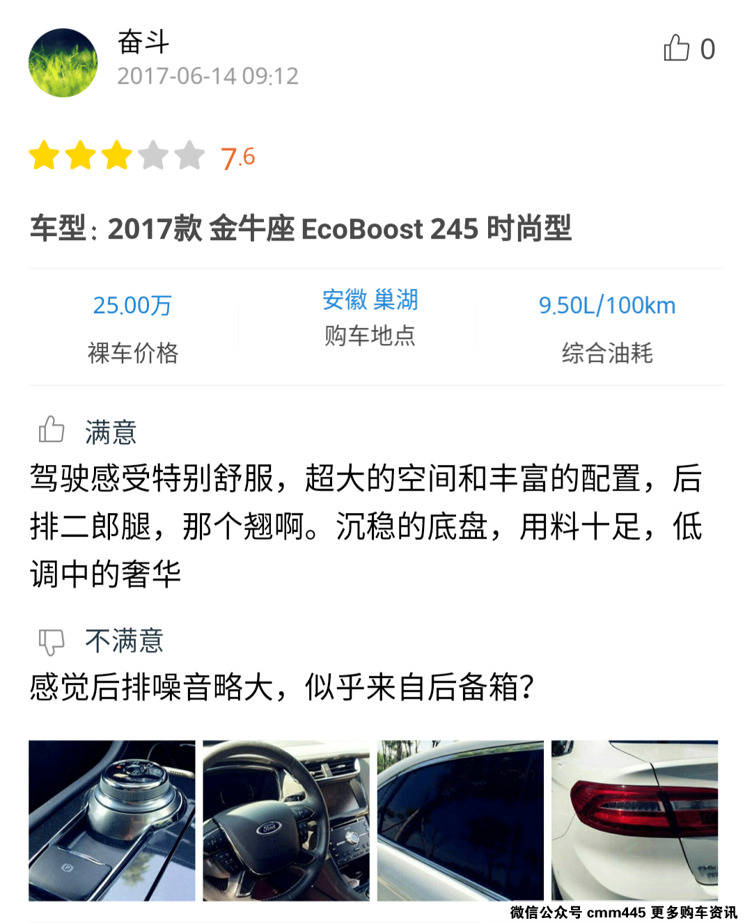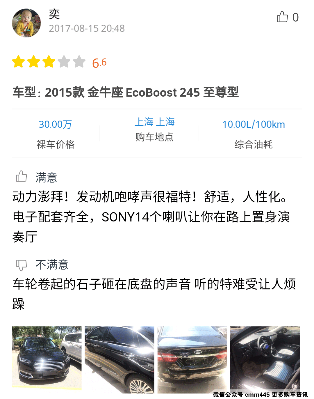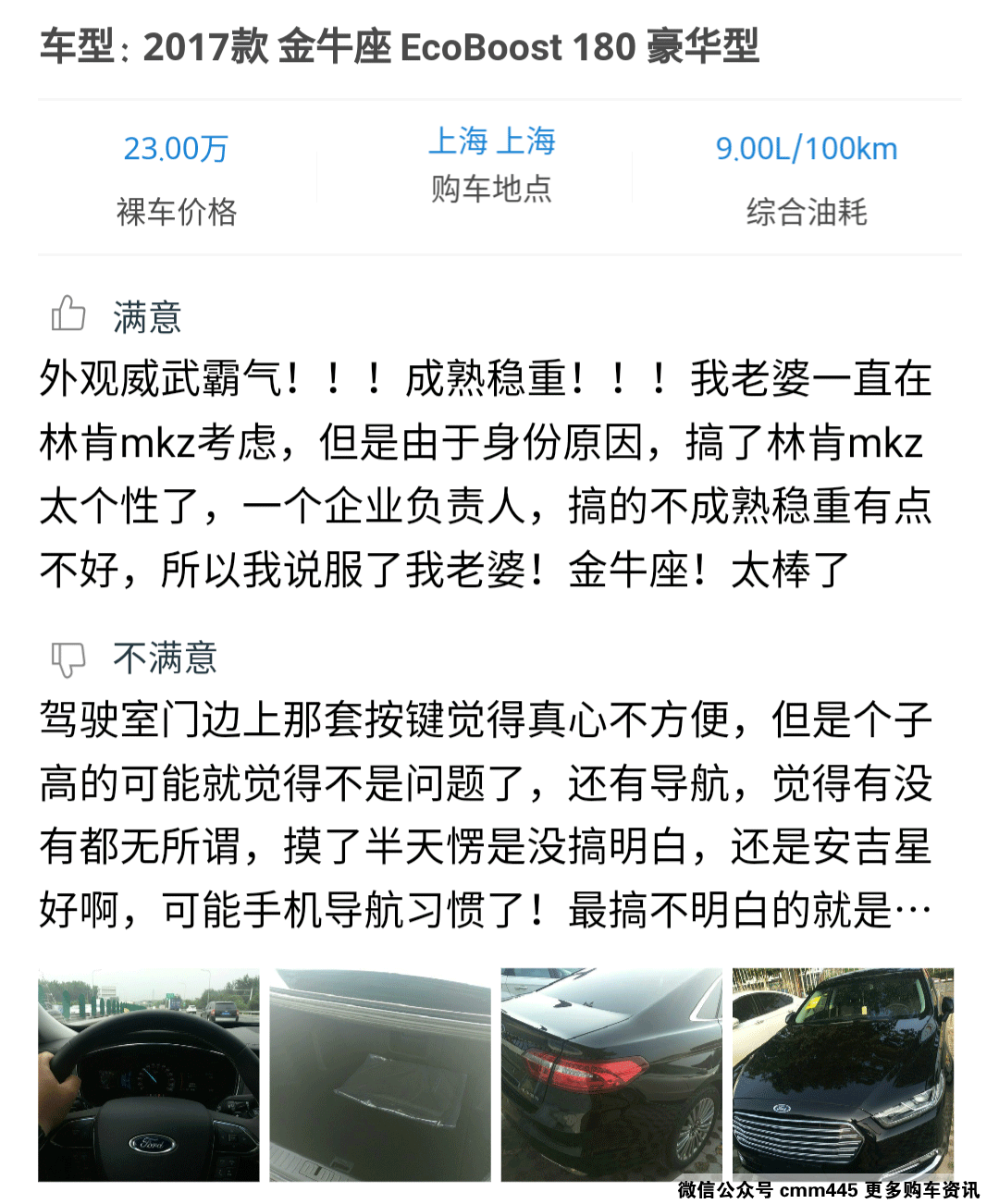 感兴趣的朋友可以点击小程序查看详细口碑,从口碑中可以看到,车主们对金牛座的动力性能、音响效果、丰富配置感到比较满意,但是对导航系统的运行逻辑有所不满。