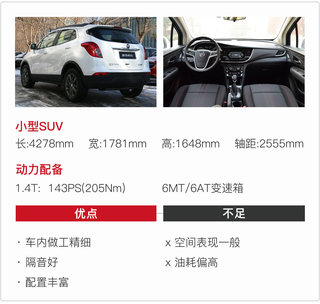 昂科拉是上汽通用国产的首款小型SUV,也算是国内小型SUV的鼻祖了,上市后引起了一波小型SUV购车热潮,论品质和做工的话,昂科拉可以说是同级车型里的标杆。新款的昂科拉采用了全新设计的前脸,内饰更加时尚精致,配置也得到了大幅的提升,在同级别车型里真的是很难找到敌手,全系标配了车身稳定控制系统、倒车视频影像、电动天窗、LED日行灯等。