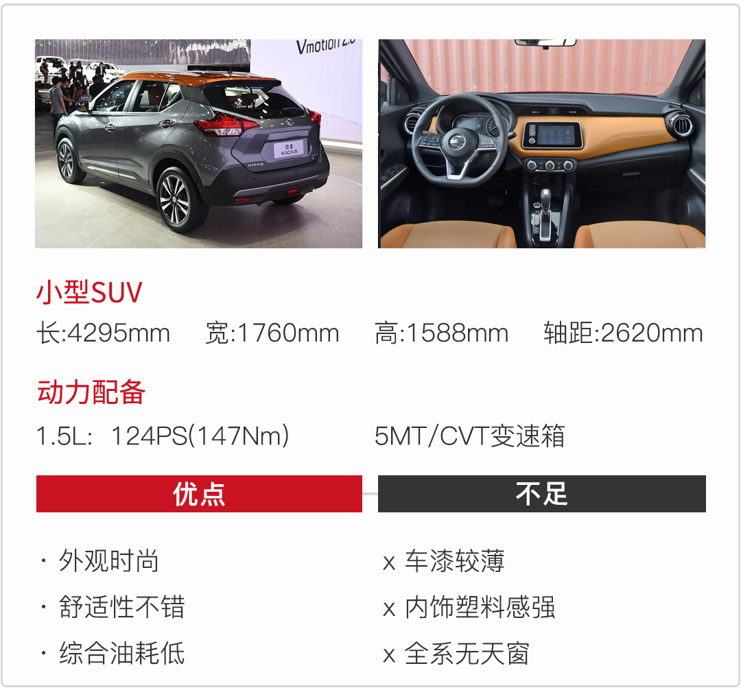 劲客是针对年轻人打造的一款小型SUV,外观设计十分潮流,丰富的腰线、拼色的车身和悬浮式的车顶都有很足的时尚感,非常吸引年轻人的眼球,内饰也可以让人眼前一亮,中控台设计简洁大方,平底的运动方向盘和炮筒式的出风口颇有运动气息,而沙发厂的出品在乘坐感受方面还是有保证的,两侧设计较高的座椅质地柔软,包裹性也不错。此外,劲客的乘坐空间也比较出色,主动安全配置方面也是同级的佼佼者。